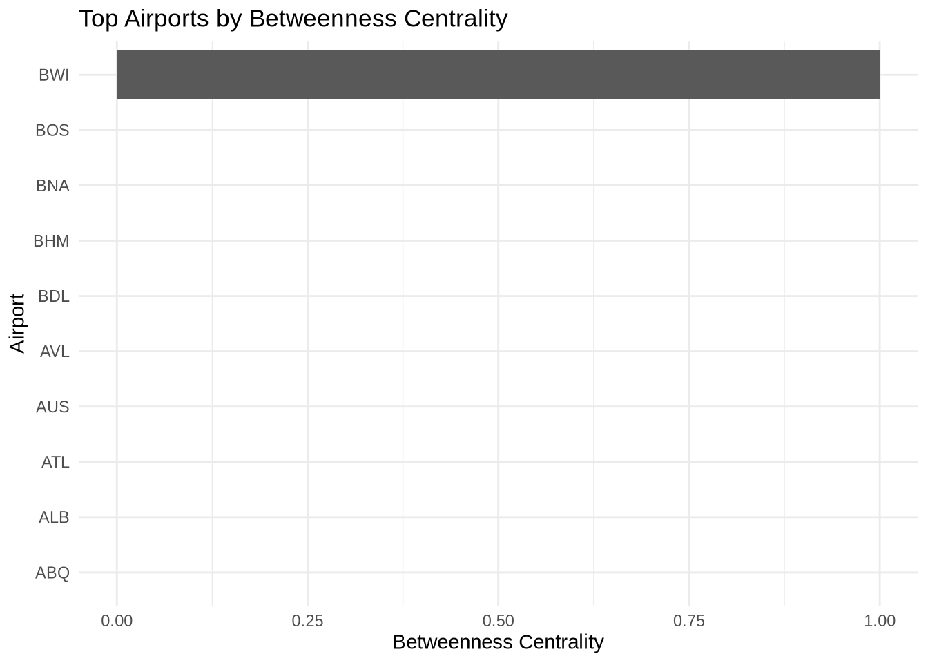# Top Airports by Betweenness Centrality