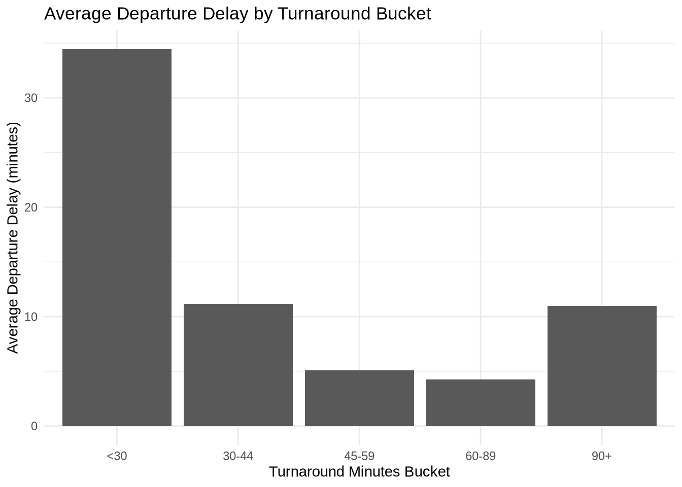 title = "Average Departure Delay by Turnaround Bucket",